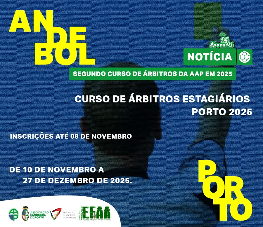 O Curso de Árbitros do Porto é uma organização da Associação de Andebol do Porto (AAP) e da Federação de Andebol de Portugal (FAP) e é uma oportunidade de entrada numa modalidade de sucesso e com valores.