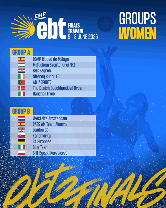 As ebt Finals, finais do Circuito Europeu de Andebol de Praia da EHF contam com a participação do atual campeão masculino, os espinhenses EFE OS Tigres, que irá defender assim o título; conta com a equipa feminina da Marinha Grande, atual Campeã nacional, AD IASports, que irá lutar por ganhar este ano, pois ficou em segundo lugar o ano passado e da equipa leceira do GRD Leça – Spar, que vai certamente alvejar ao título num percurso internacional em crescendo, depois da conquista da Champions Cup ´24.