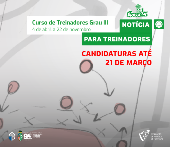 A Federação de Andebol de Portugal (FAP) lançou um novo curso para treinadores de Grau III, a iniciar em abril e cujas candidaturas estão já abertas e vão até dia 21 de março.