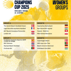 A 11ª Edição da EHF Champions Cup será disputada esta semana e pelo quarto ano consecutivo nos areais do Porto Santo, Madeira, Portugal, com esta edição de 2025 a decorrer de 16 a 19 de outubro e com o GRD Leça SPAR a defender o título de Campeão Europeu.
