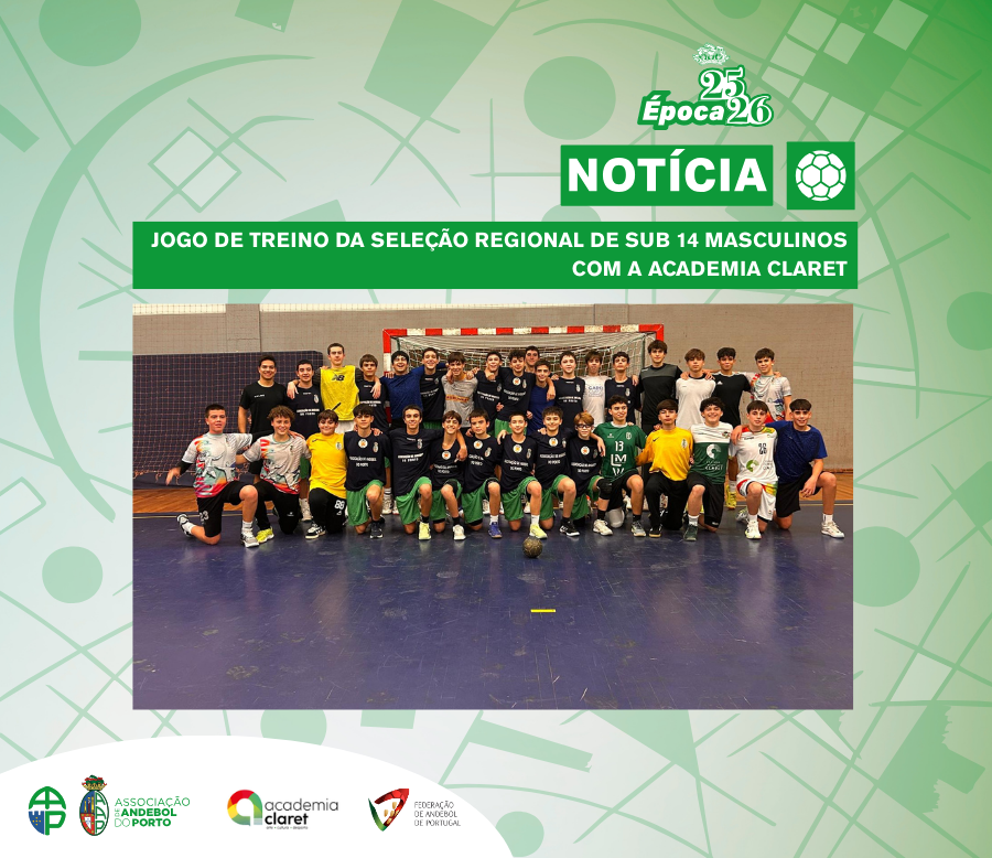 O habitual treino de segunda-feira da Seleção Regional de Sub 14 masculinos da Associação de Andebol do Porto foi desta vez um jogo de treino com a equipa de Sub 16 da Academia Claret e que se realizou no Pavilhão do Colégio Claret.