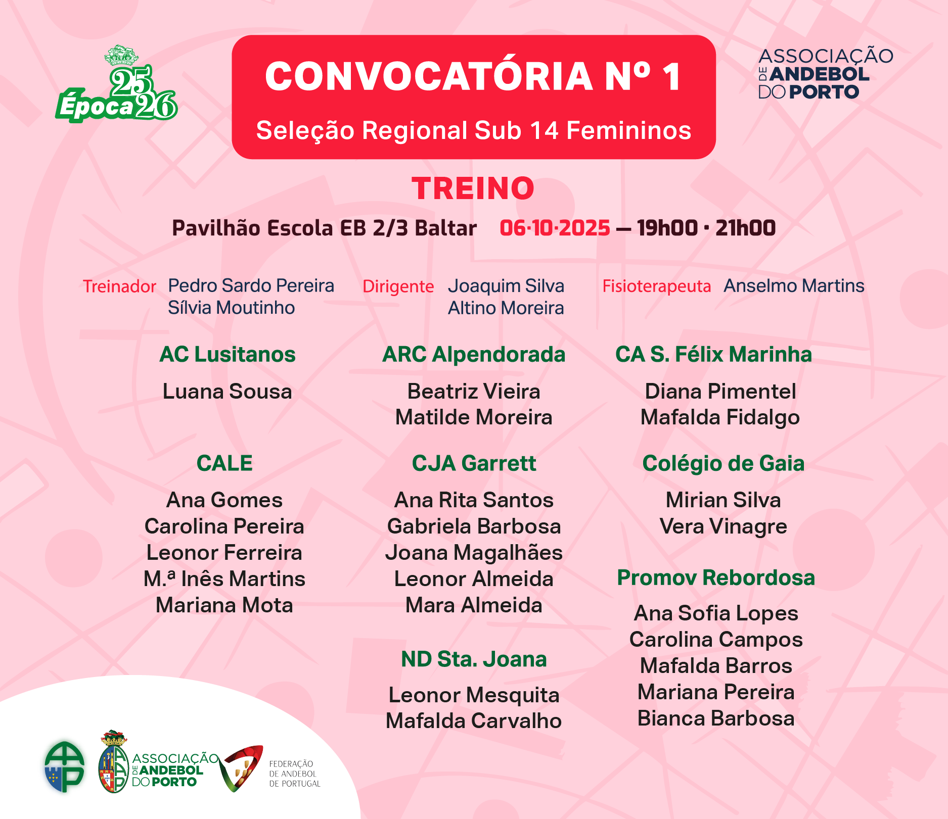 A Seleção Regional feminina inicia os seus treinos no Pavilhão da Escola EB 2/3 de Baltar e nesta primeira convocatória estão 24 atletas referenciadas na sua maioria pelos seus clubes (treinadores e coordenadores), talentos nascidos em 2012 e 2013.