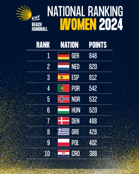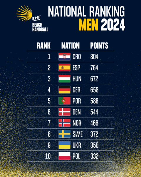 NOTÍCIA EHF: https://beach.eurohandball.com/news/en/croatia-germany-stay-top-of-beach-handball-national-rankings/