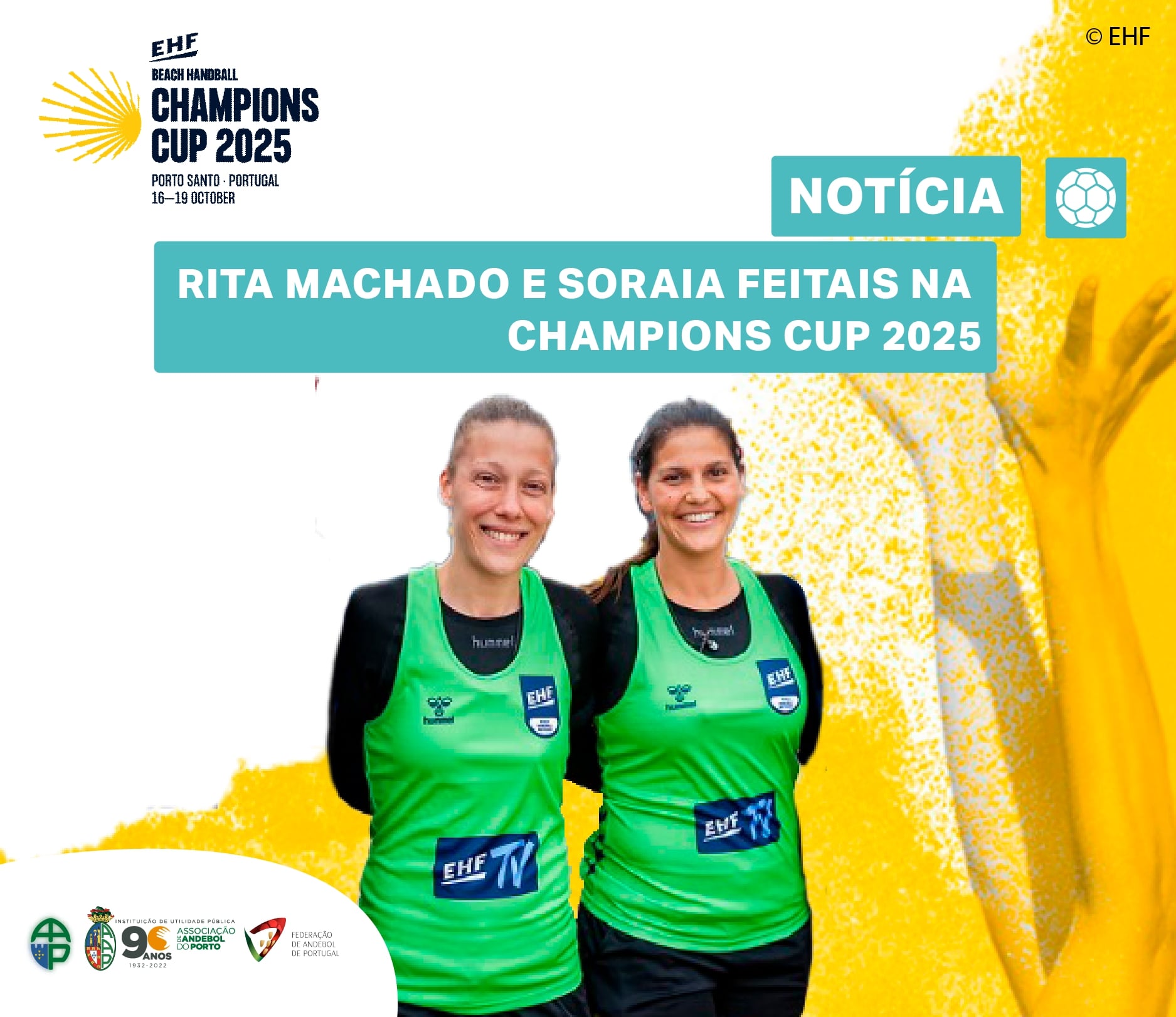 A EHF Champions Cup 2025, que decorrerá pelo quarto ano consecutivo no Porto Santo, Madeira, vai decorrer de 16 a 19 de outubro e tem já confirmada a nomeação da dupla internacional de Andebol de Praia Rita Machado e Soraia Feitais.