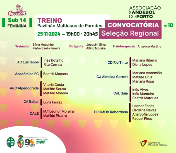 A Convocatória Nº10 das Sub 14 Femininos da AAP é já conhecida e apresenta 21 nomes e 9 clubes.