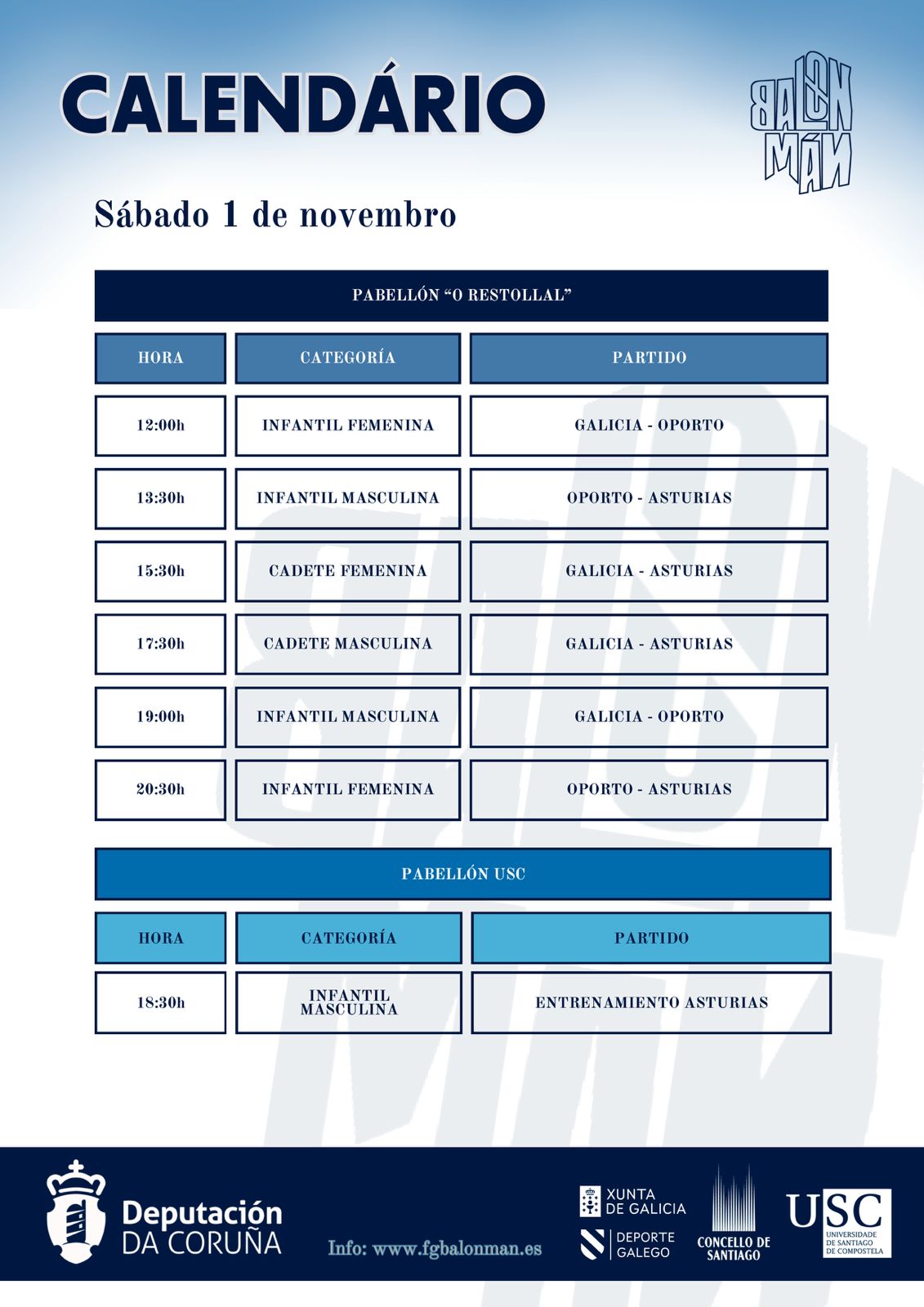 Prestação positiva e experiência e contacto internacional importantes nos dias 1 e 2 de novembro (sábado e domingo) para as seleções feminina e masculina de Sub 14 da AAP, que estiveram na Galiza no Torneio da Federacións Galega de Balonmán e disputaram 3 jogos cada uma.